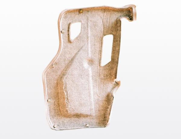 料或布料,基材采用木粉板压制而成的汽车门内装饰件,在压制的同时装嵌上各固定零件。
